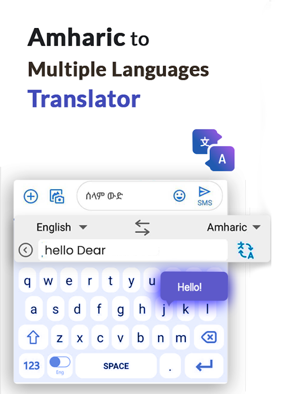 Fast Amharic typing keyboard is for Amharic lovers who want to use “Amharic to English translation” through default English keyboard. Now you can chat on social media, it's easy to use, you just write in Roman English and easy Amharic keyboard app and Amharic keyboard online will change it into Amharic language.