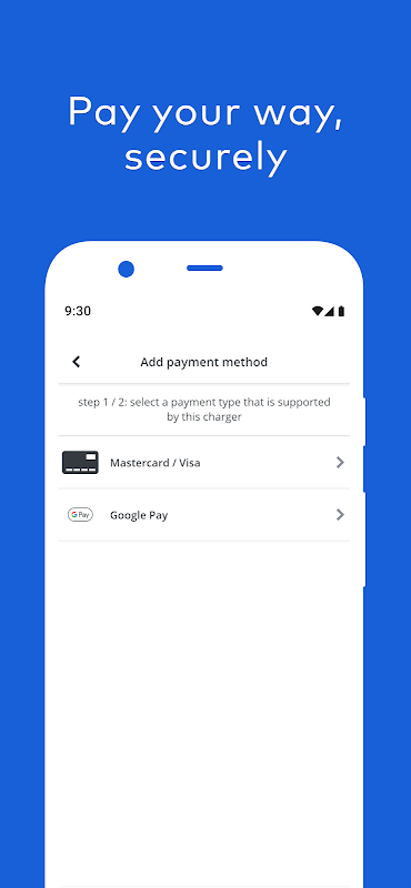 我們的 AmpCharge 應用程序具有便捷的支付選項,包括 Google Pay、Visa、Mastercard 和 AMEX。