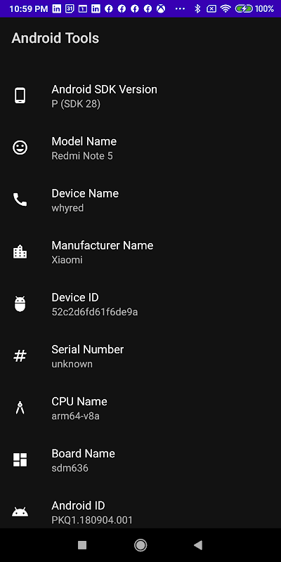 設備信息:訪問有關 Android 設備的重要詳細信息,包括型號、製造商、屏幕分辨率、CPU、RAM 和存儲容量。出於兼容性和開發目的,確定設備上安裝的 Android 版本和 API 級別。監控電池健康狀況和狀態以確保最佳性能。