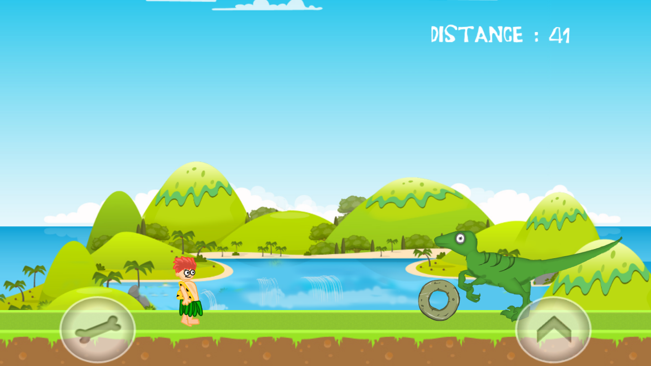 穴居人需要扔骨頭殺死恐龍,需要跳轉到避免像石頭和尖刺的障礙,並為他的家人叢林和平的地方。