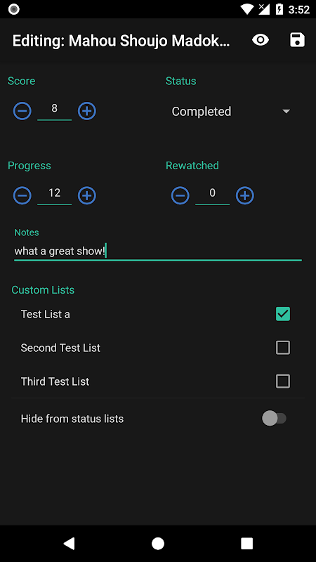 該應用程序為您提供了一種方便的方法來管理您的AniList動畫和漫畫列表,搜索數據庫以及跟踪演出和文學作品的進度。