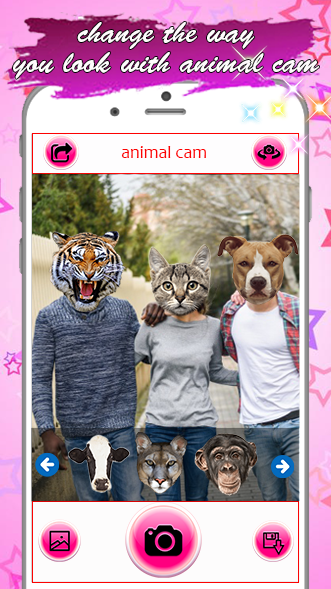 Unleash the hidden instinct inside you and find out what animal are you by creating some face montage pictures and put an animal face instead of your own. Get the funny selfie camera that will make you laugh like crazy! Perform animal morph upon every image you have on your mobile device and they'll turn out zillion times better. Just flip through the collection of realistic animal photos that our animal stickers app stores just for you and choose the one that catches your eye. All the rest is done by this fantastic animal picture app. When you are finished, post your funny photo montage and be proud of the photo art you made. Make people with animal faces and spread laughter around you with app, the best photo editor on the market for free!