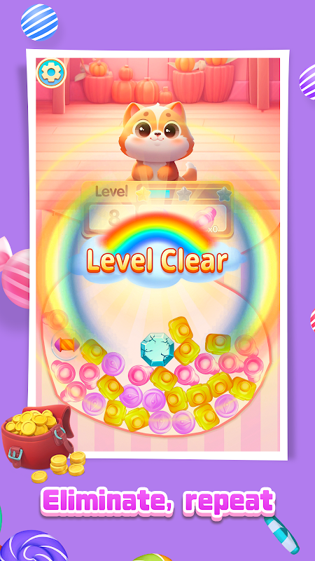 Try to clear all candies, you will get a lot of bonus, the cool rainbow scene, clear panel design, gorgeous and fresh special effects, and gorgeous and precious candies will accompany you to spend a happy and leisure time~