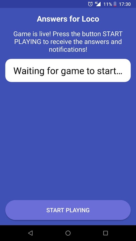 Answers for Loco Trivia will give you live answers suggestions for Loco Trivia game! It's completely automatic, you just need to open Answers app, click Start Game and wait for answers to come. You can be playing Loco Trivia and receive notifications with the most probable answer!