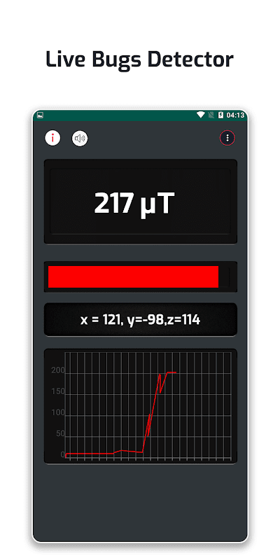 檢測隱藏的設備我們的應用程序通過檢測附近設備的輻射(磁場)來充當輻射檢測器。