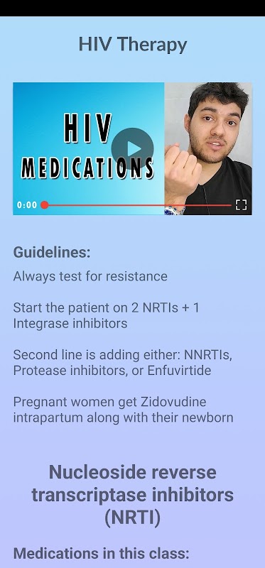 該應用程序包含作用機制、適應症、副作用、阻力和考試筆記。在每一頁的末尾都有一個測驗部分,您可以在其中測試您的知識並鞏固您所學的信息。