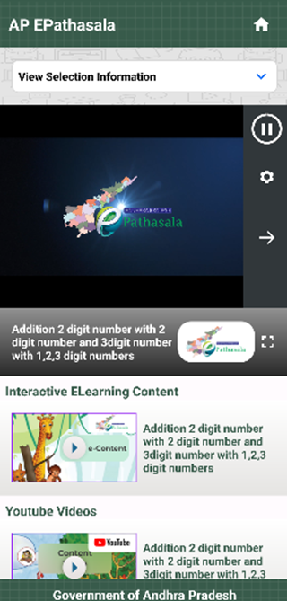AP e-Pathasala 應用程式可滿足學生的學習需求、教師的學術支援、學習速度慢的補習和家庭學習。透過提供視頻,學生將有機會了解特定班級的學習成果,以及針對學習緩慢的學生的補救措施和針對資優學生的高水平能力。