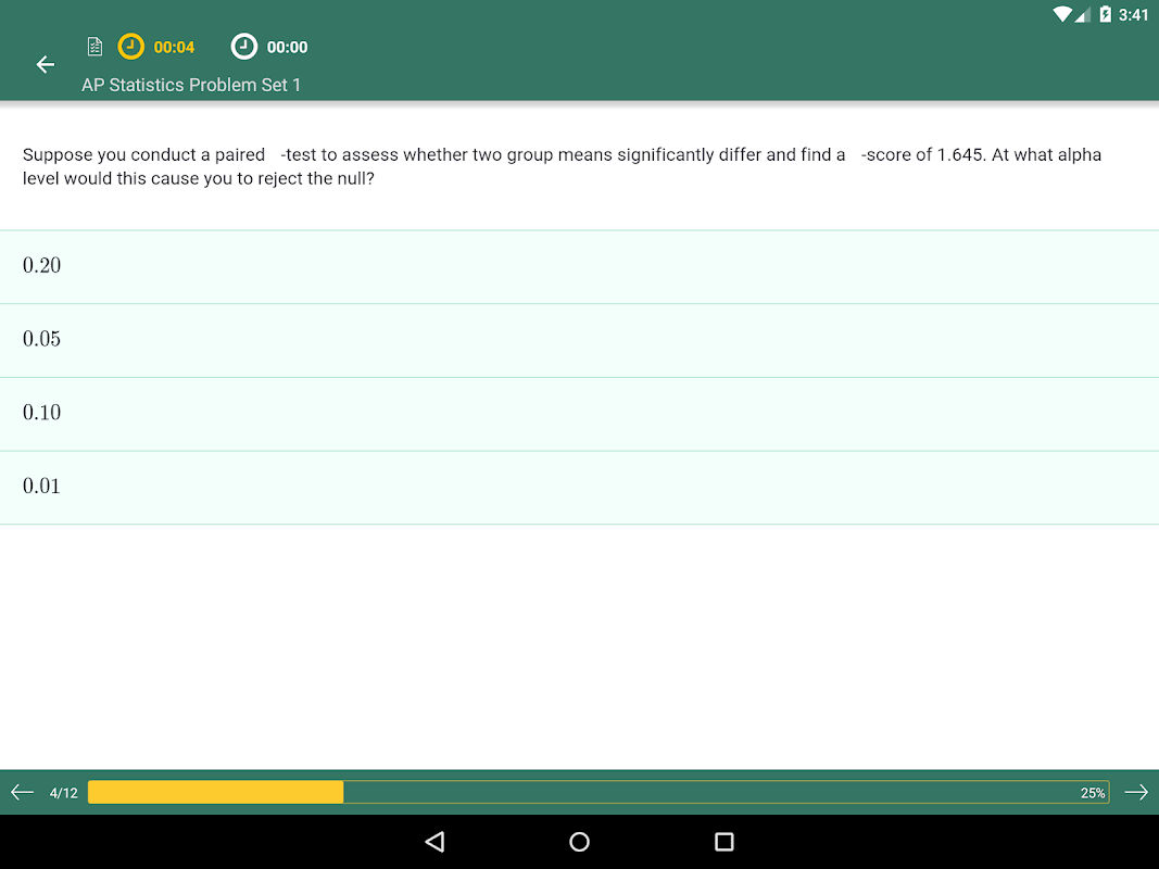 該應用程序的綜合診斷評估可能突出了單變量的數據集或置信區間的測試弱點。此外,該應用程序的便攜性和連接可以讓您與他人分享你的成果,隨時隨地學習。採用Android的智能手機和平板電腦隊打導師AP統計應用程序可以讓你的AP統計考試準備一個更簡單,更方便的過程,所以今天試試吧。