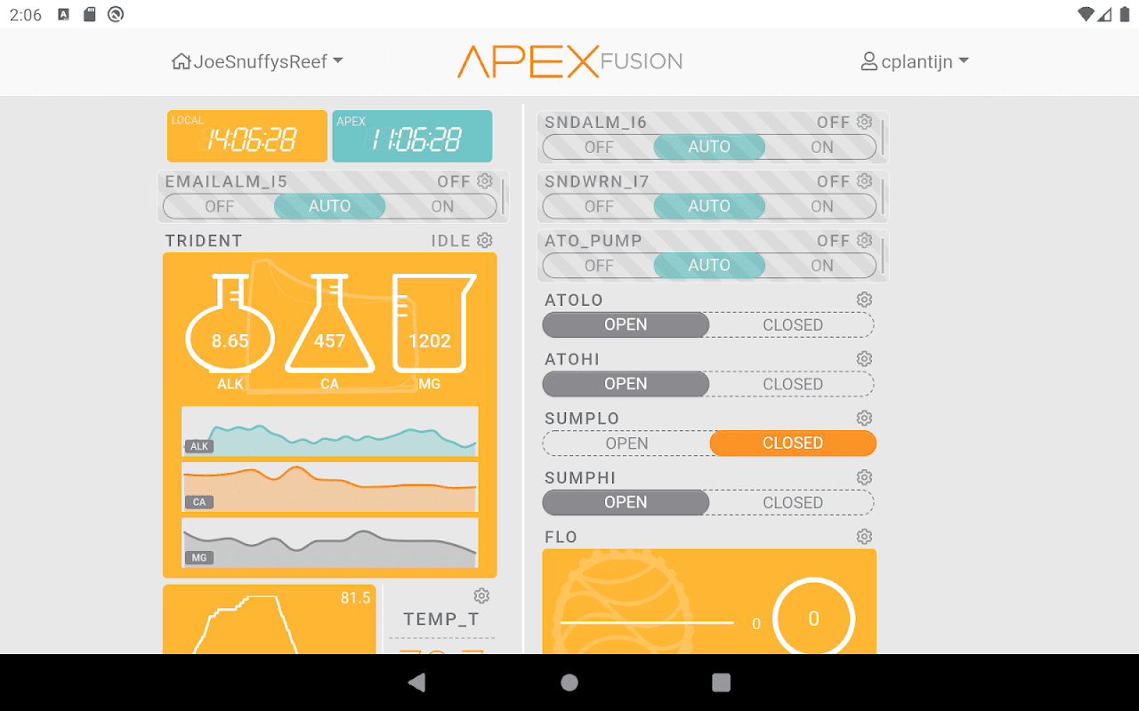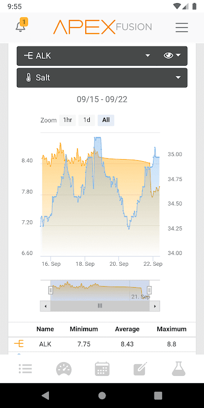 - 通過觀察溫度,pH,ORP,鹽度等的當前和過去歷史來監控您的水族箱的健康狀況(當然,取決於您的Apex系統的配備方式)