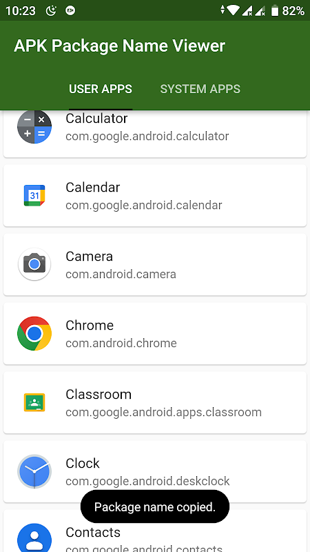這個應用程序將向您顯示 APK 包名稱,並幫助您輕鬆複製它。