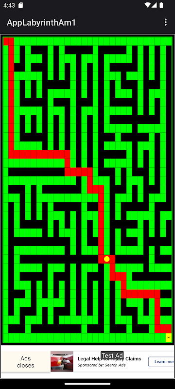 該應用程式具有生成具有設定字段寬度和高度的迷宮的功能,迷宮的大小最多為 10000 個單元格。每個牢房不是一堵牆,就是可以自由通過的。路徑(分別是牆壁)是隨機產生的 - 選項之一和第二個選項 - 用於學習的靜態三個迷宮。道路、牆壁和小徑都有不同的顏色,可以選擇。這個通道是透過一個移動的球來模仿的,它以多種方式移動:透過拖曳、透過重力、透過說出指令(左、右、上、下)、獨立和加速。輸出是球顏色的單元格。該應用程式具有點對點路徑查找器功能。