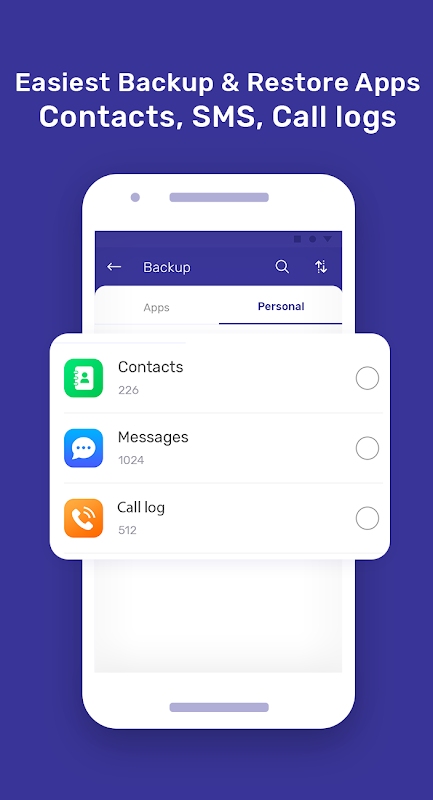 🍒 This Easy Back-up restore app helps you back-up & restore your Apps, Contacts、SMS、Call logs to SD cards or RAM or cloud drive quickly.