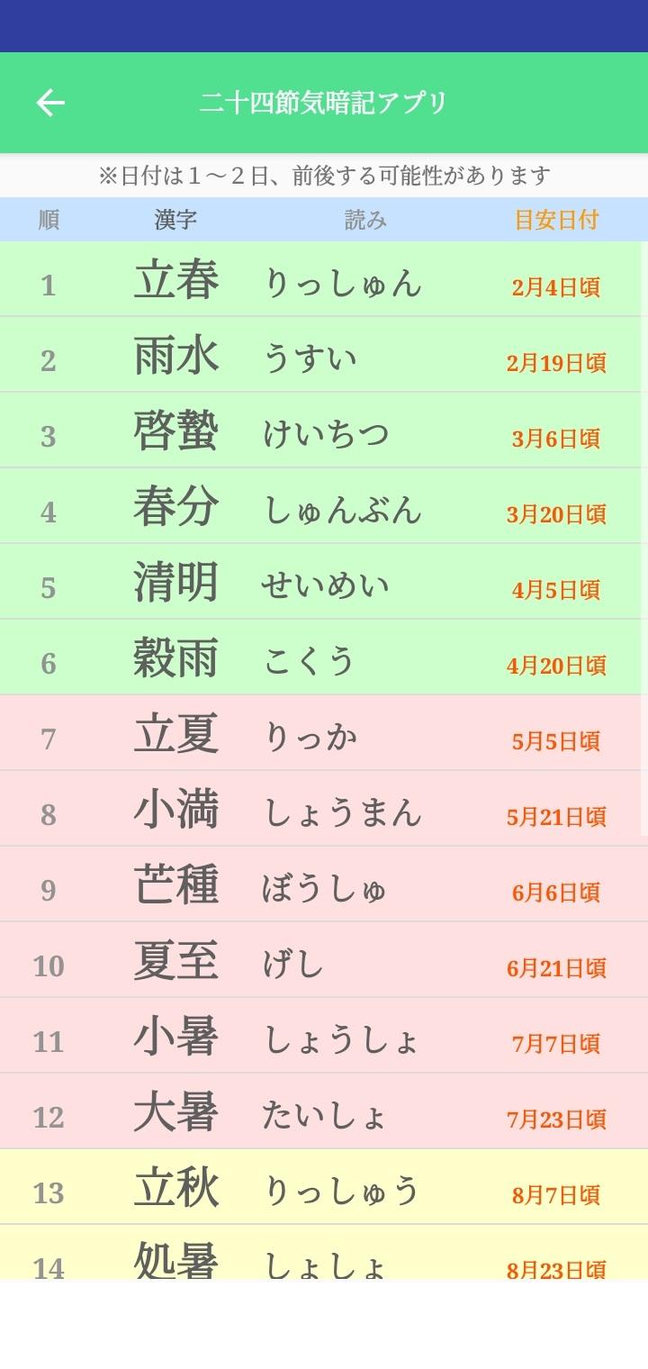 這是一個應用程序,支持二十四個呼喊(Ritsuharu,Harumizu,Kiyoaki,夏至,秋天等)的紀念品,這已被用作代表季節的術語。