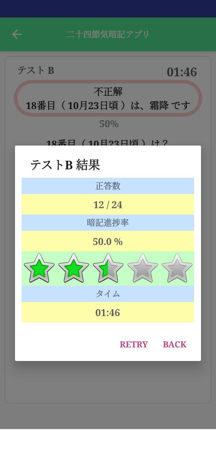 在列表模式下,它將顯示要記住的漢字和二十四段的讀數。