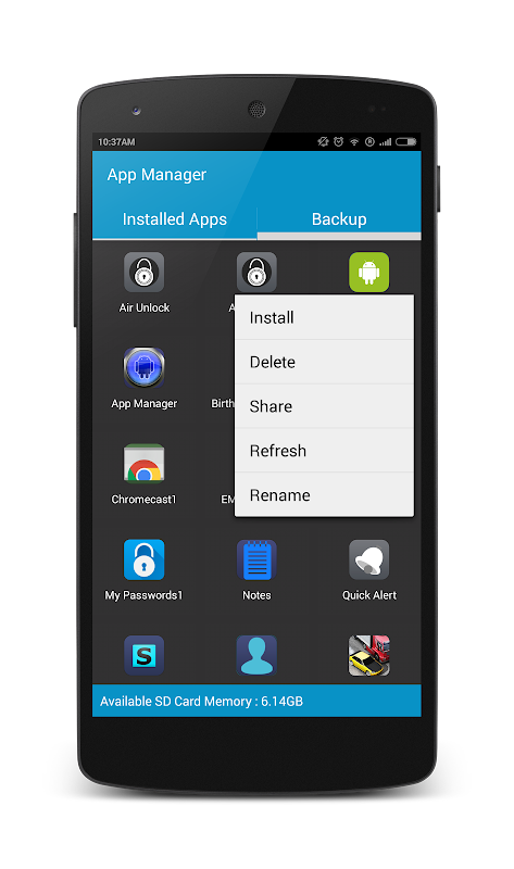 Easy way to manage the installed applications and allows to take backup of the application in the SD card.
