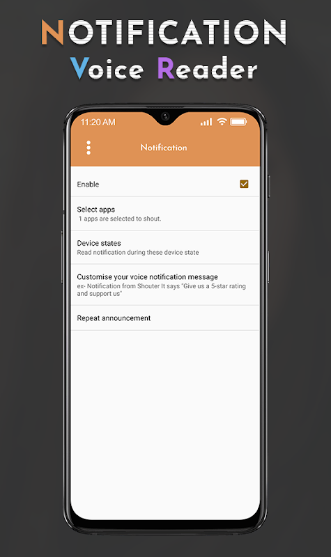 Get ready for the Voice Notification Reader which reads the voice notifications for you so that you do not have to read them yourself and some additional features such as announcing the caller's name, reading messages, smart notifications showing the status of battery call and notification alert.