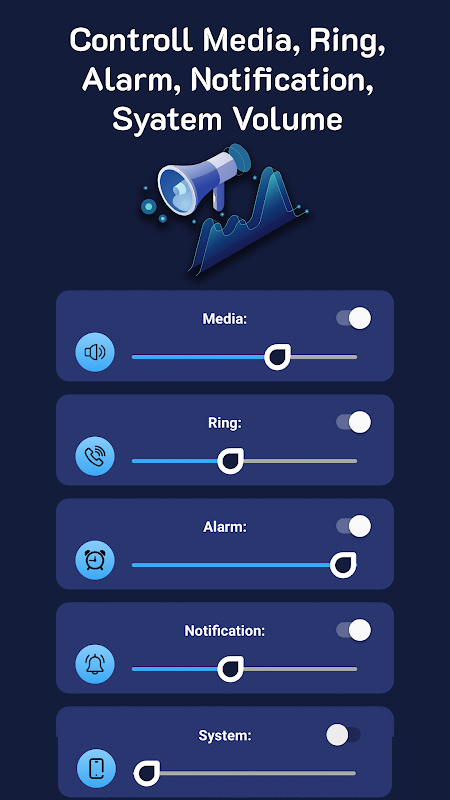 調整並保存應用程式的所有音量設定(媒體、鈴聲、鬧鐘、通知、系統),並將在應用程式啟動時設定完整設定。