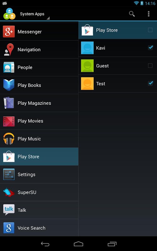 AppShare is also ideal for restricting the use of certain apps to particular user accounts – e.g. Disable the Play Store on your kid's user account and control the apps they have access to.