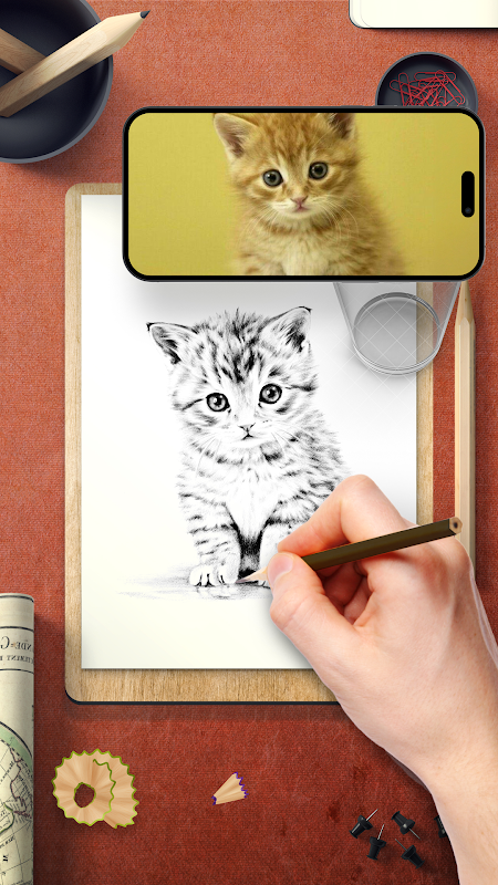 ❤️ 擴增實境 (AR) 投影:透過 AR 技術,可以將任何照片轉換為可追蹤的輪廓。將您的手機放在某個表面上,應用程式將覆蓋草圖供您描畫!