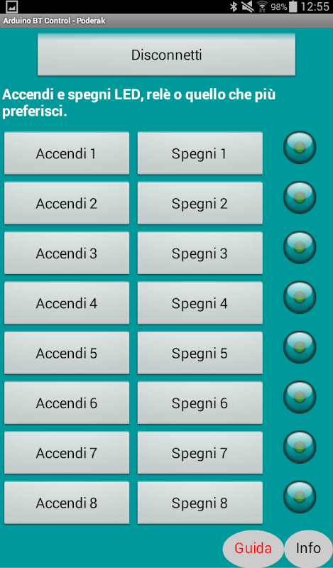 Nell'applicazione sono presenti avvisi riguardo l'associazione tra il modulo bluetooth ed il vostro dispositivo. In questo modo potrete verificare l'effettiva comunicazione tra l'app e l'Arduino.