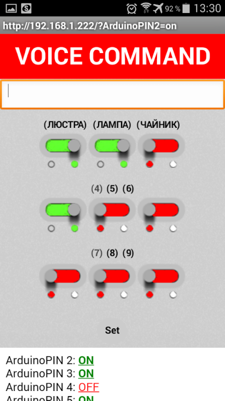 與“Android設備”通過Wi-Fi地址發送命令到Arduino,啟用/禁用的Arduino的相應引腳。