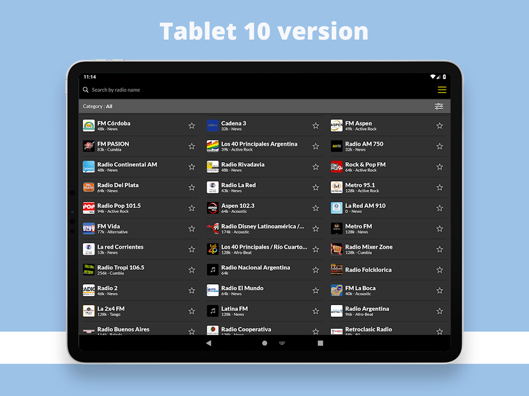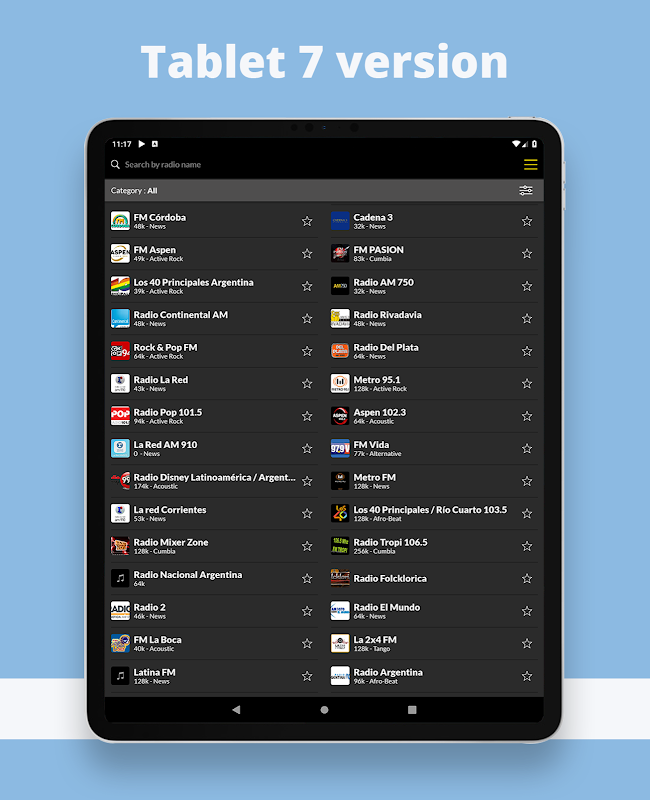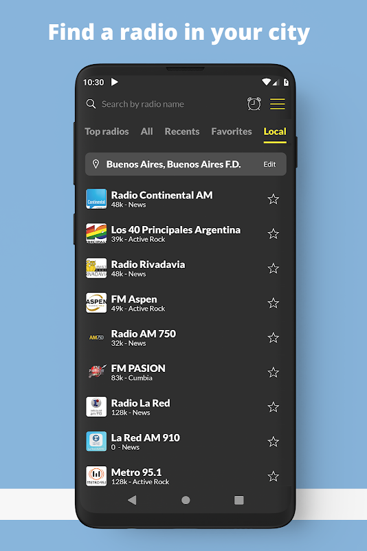 使用阿根廷廣播電台收聽所有您喜愛的廣播電台,如 Los 40 Principales、Continental、Metro 95.1、La Red、Cadena 3、Aspen、Disney Latinoérica、Rivadavia、Mega 98.3、Vorterix Rock、Pasion、Del Plata、Pop 101.5、Blue 100.7 ,科爾多瓦,並根據我們的建議發現許多其他收音機!