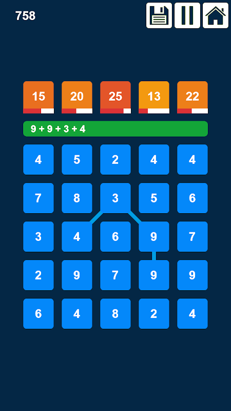 ★算術數學加法:連接3個或更多數字,使它們的和等於目標數字之一。
