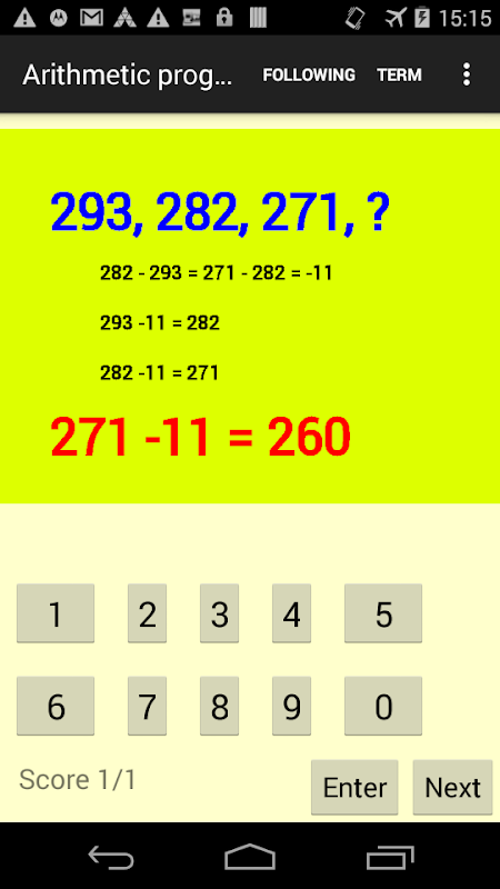 The Android application generates random numbers and ask you to enter the following term of an arithmetic progression.