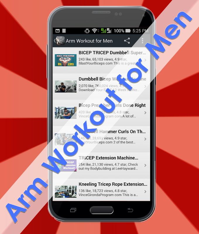 This fantastic application collects the best video tutorials to learn how to apply Arm workouts fat burning, tips, tricks. including Arm workout to lose weight, chest and back exercise, leg and buttock training etc.