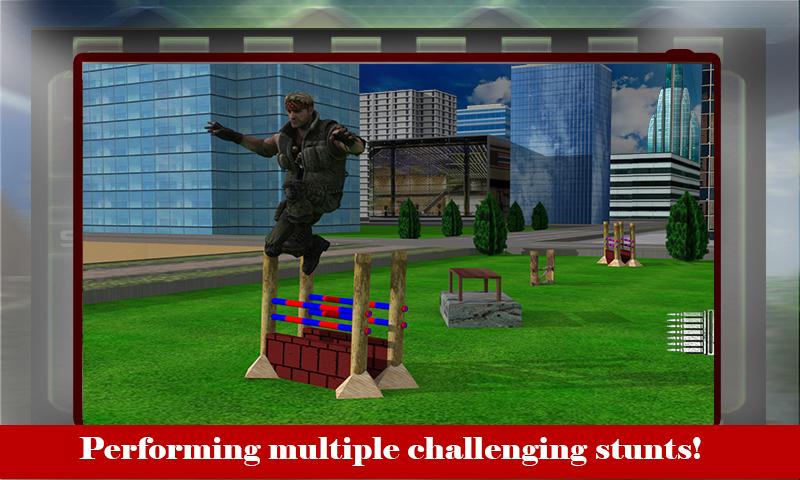 As a trainee officer , you must acquire the skills of running fast, jumping through hurdles, controlling helicopter and other vehicles so that you can join the army and become a perfect commando officer . In each level, you will be provided a specific challenge of jumping, crossing through certain obstacles, barriers, ring loops etc. Each level brings a truly unique flavor. Different challenging missions, realistic environment, guns, friendly shooting controls, angry enemies, nice 3D graphics and great sound effects are waiting for you. You have to complete levels within the provided given time.
