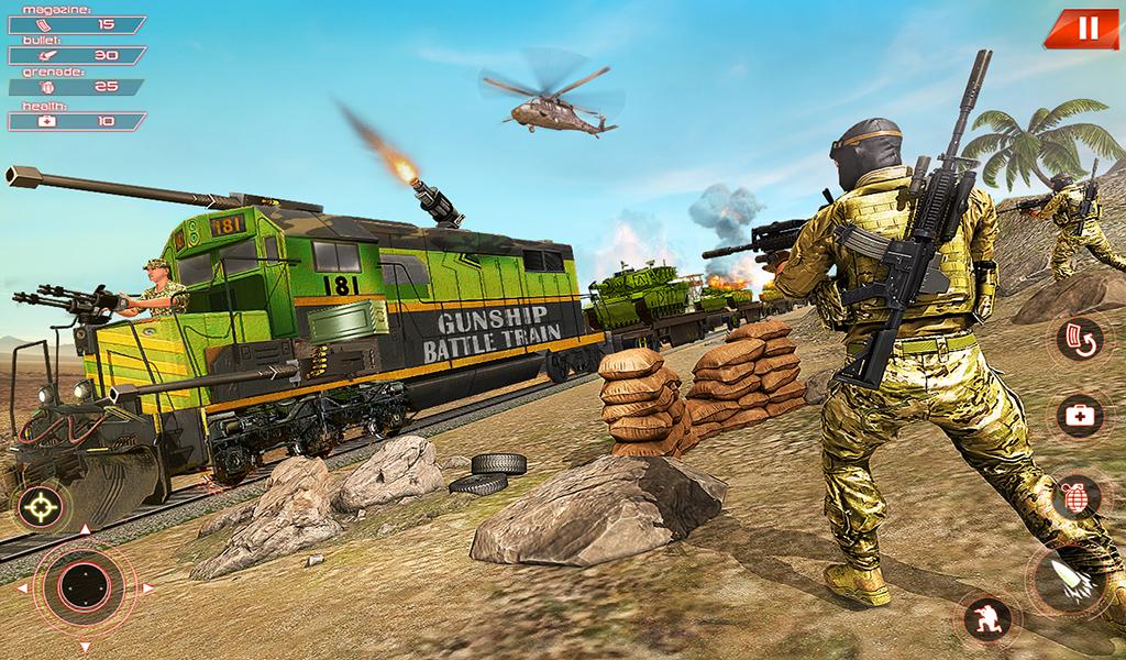 進入激烈的射擊遊戲,在動態的火車模擬器中運送武器並與敵人戰鬥。駕駛軍車穿越戰區,使用重型火砲,保衛你的國家免受敵人的攻擊。參與高速戰鬥,在具有挑戰性的任務中證明你的技能。