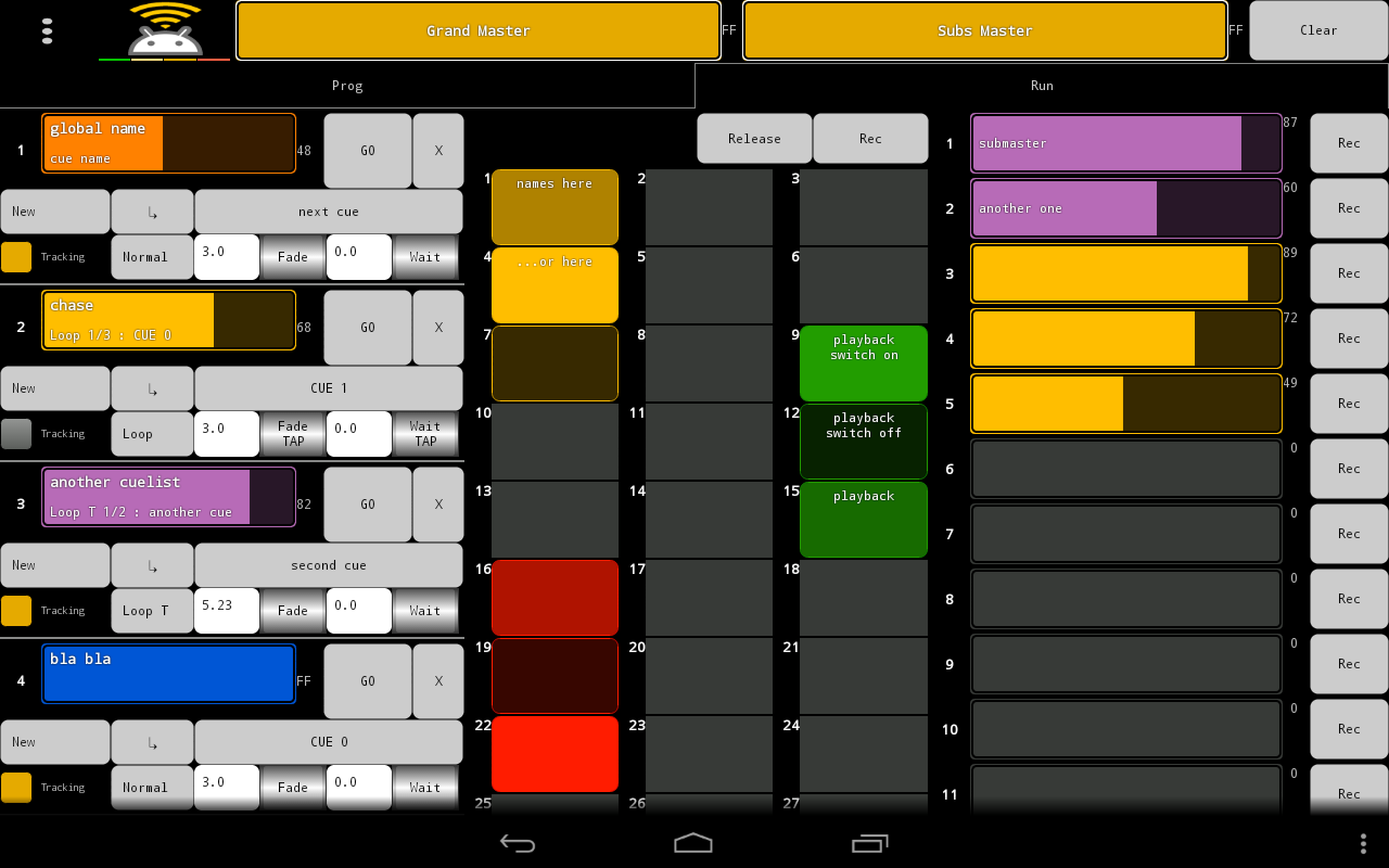 - Added scrollables subs, cues and playbacks (max 99 of each)