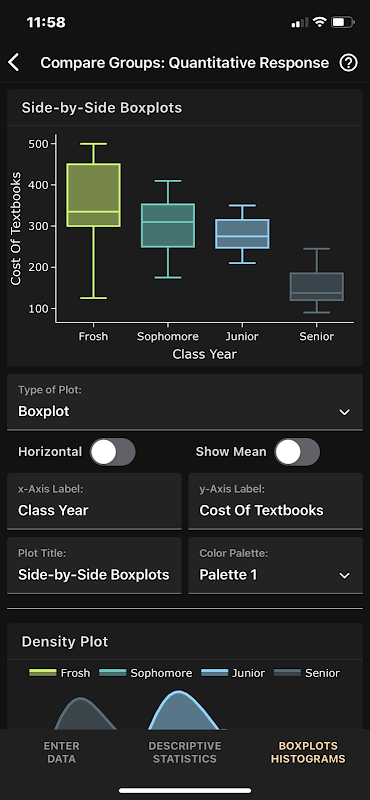 該應用程式附帶了多個預先載入的範例資料集,您可以直接在應用程式中開啟這些資料集來探索該應用程式的各種功能。您也可以輸入自己的資料或上傳自己的 CSV 檔案(任何電子表格程式都可以建立)並從中選擇變數。最後,該應用程式包括一個稱為資料編輯器的基本電子表格程序,用於建立和編輯資料。