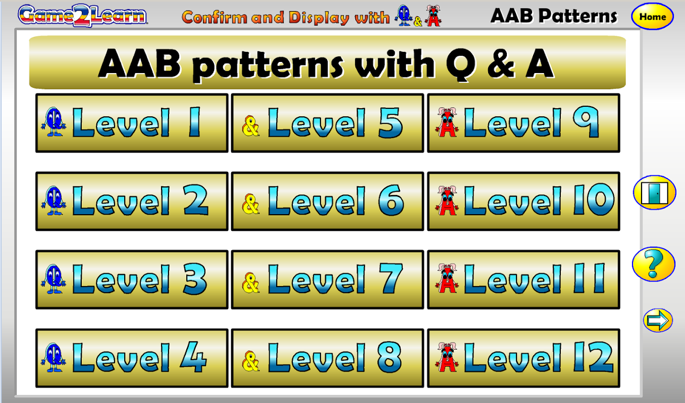 Assessing AAB Patterns with Q&A also includes a number of 'just for fun' brain games that reward children for completing each assessment task while breaking the continuous assessment cycle and its associated anxiety.