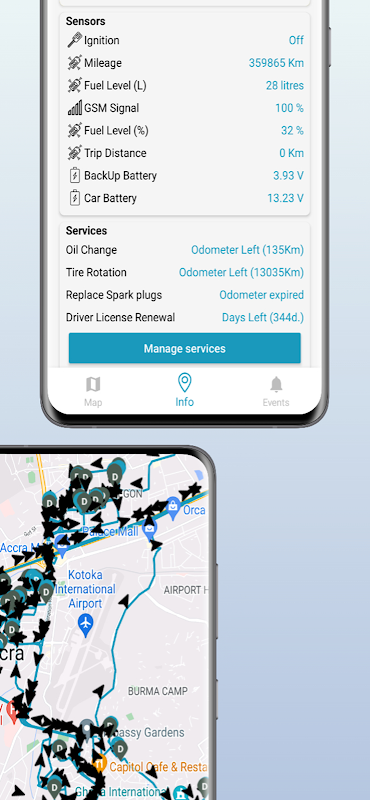 C。雷亞時用燃料水平監測,包括油耗,盜竊警報