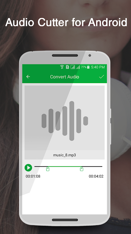 Audio Cutter for Android app to cut or trim MP3, WAV, AAC, and AMR audio files .