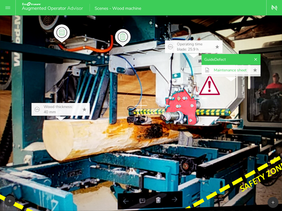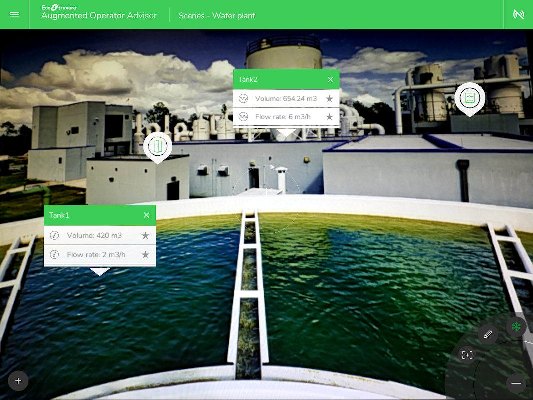 EcoStruxure增強型操作員顧問可隨時隨地將實時信息放在您的指尖。自定義應用程序通過增強現實提高了操作效率,使操作員能夠將當前數據和虛擬對象疊加到機櫃,機器或工廠上。