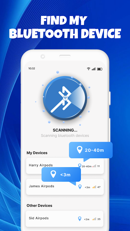 憑藉「尋找我的AirPods」、「自動連接藍牙」、「藍牙掃描器、藍牙查找器」和「尋找我的藍牙裝置」等功能,我們的應用程式脫穎而出,成為具有AirPods Tracker 應用程式的終極藍牙應用程式.使用我們的藍牙應用程式找到您的 AirPods