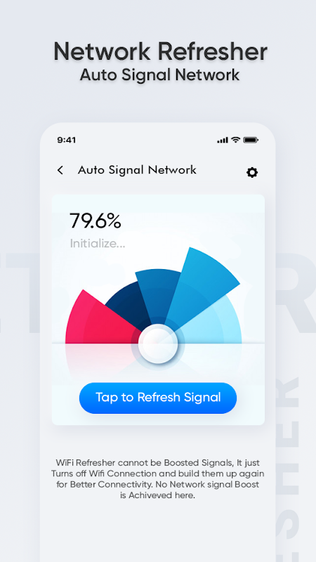 Auto Internet and Network Refresher will interface you to the quickest system that will enhance your Mobile Network and Internet Speed. This application will assist you with tackling all your system signal issues that you might be confronting. Along these lines Auto Network Signal Refresher application will help your tackle your system association issue. Improve your present system to get clear web speed through this application. simply invigorate your system with one tap on portable screen application will consequently perceive the unmistakable and quick system.