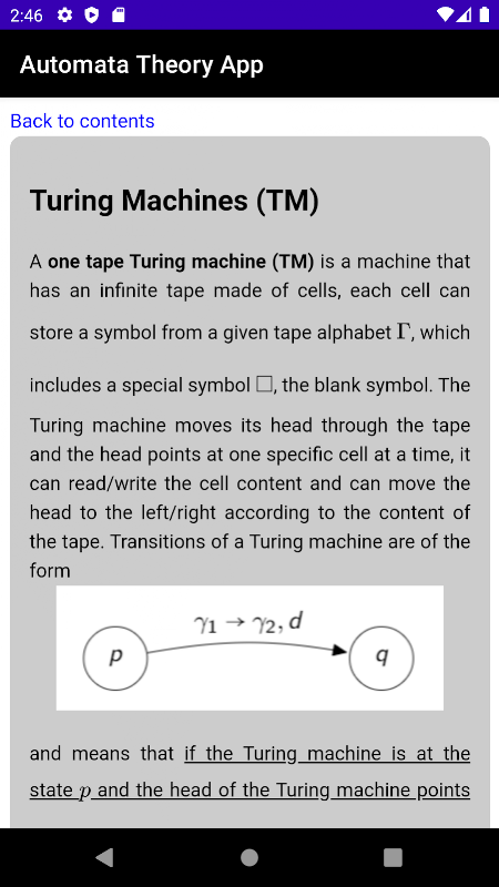 Automata Theory App 提供對自動機理論和形式語言主題的簡要總結。提供了主要的定義、事實、示例和帶有解決方案的練習。 Automata Theory App 可用作學習指南和資源,以便在您的設備上進行快速諮詢。