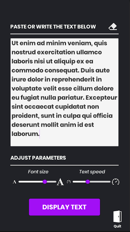 以所需的速度自動滾動文本以輕鬆記錄和朗讀。編寫或粘貼文本,然後設置滾動速度和字體大小。最後,自動滾動您的文本。廣播公司、歌手、視頻創作者的有用工具。