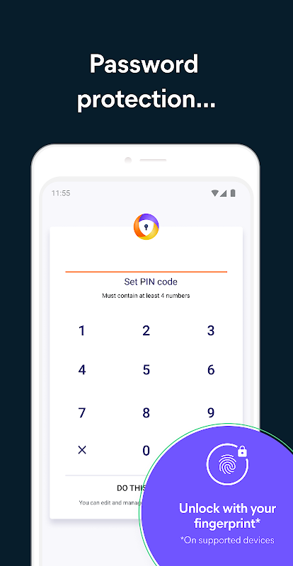 Feel comfortable sharing your mobile device with friends or family knowing your private browsing data is encrypted and locked with your PIN code or fingerprint.