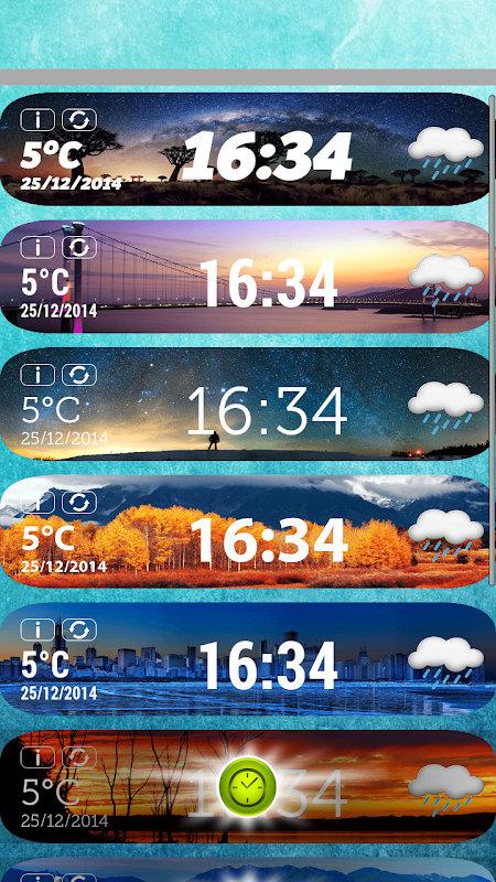 美麗的小部件的外觀和背景肯定會離開你說不出話來。沒有什麼能刷新枯燥的壁紙,因為這夢幻般的時鐘和天氣小部件4X1。風景和景觀的圖像會做出浪漫的氛圍,並填寫你的正面能量。你甚至不會注意到你已經成為一個更樂觀的人,即使在寒冷的陰雨天。