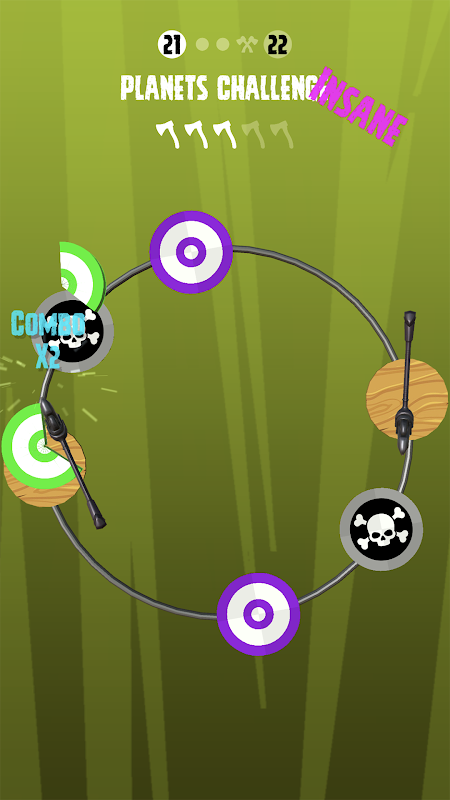 - 向目標靶心扔出飛斧將他們擊破