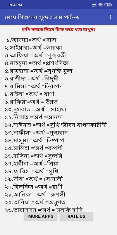 অ্যাপ থেকে খুব সহজেই পছন্দ অনুযায়ী ছেলেদের সুন্দর ইসলামিক নাম কিংবা মেয়ে শিশুদের সুন্দর ইসলামিক নাম অর্থসহ পাবেন।