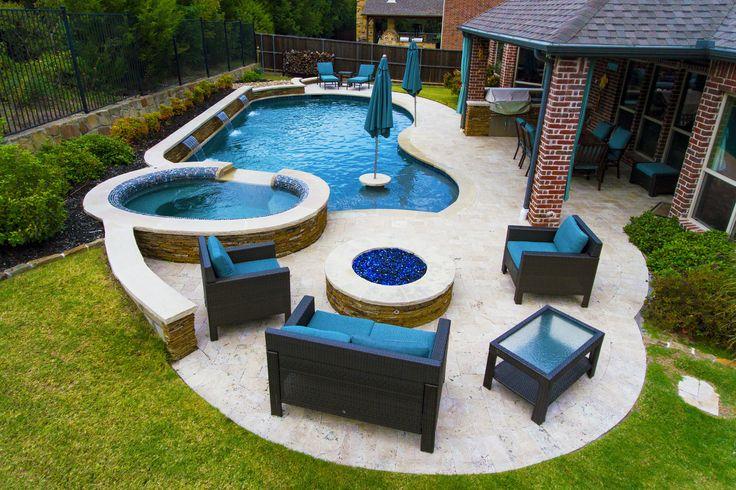 從院子到游泳池,岩石和碎石形成了一個巨大的空間,它看起來更像是一個池塘或河流流經開闊的田野,而不是混凝土的池塘。如果您有一個寬敞的甲板,然後決定在底樓安裝游泳池,請使用裝飾。寬大的甲板為您提供了游泳時享用清涼飲料的空間,而高架甲板則使設備看起來像是內置的。
