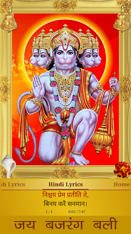 ★ Hindi & English Lyrics with auto smooth scrolling on playing Bajrang Baan.