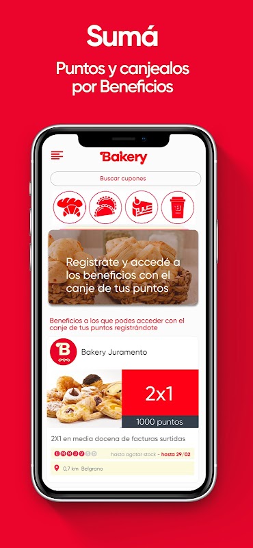 使用布宜諾斯艾利斯麵包店應用程序,您可以在所有購買中添加積分,然後用積分兌換最美味產品的折扣!