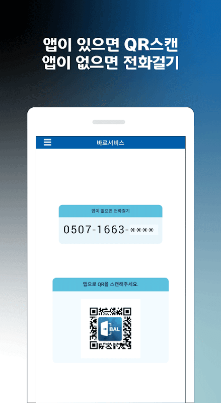 BAL앱을 사용시 ARS만 사용하거나 QR코드만 사용하거나 또는 둘 다 사용할 수 있습니다.