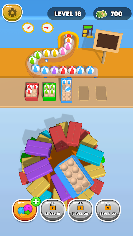 將彩色球分類放入相符的盒子中。在這個快節奏的謎題中測試技能